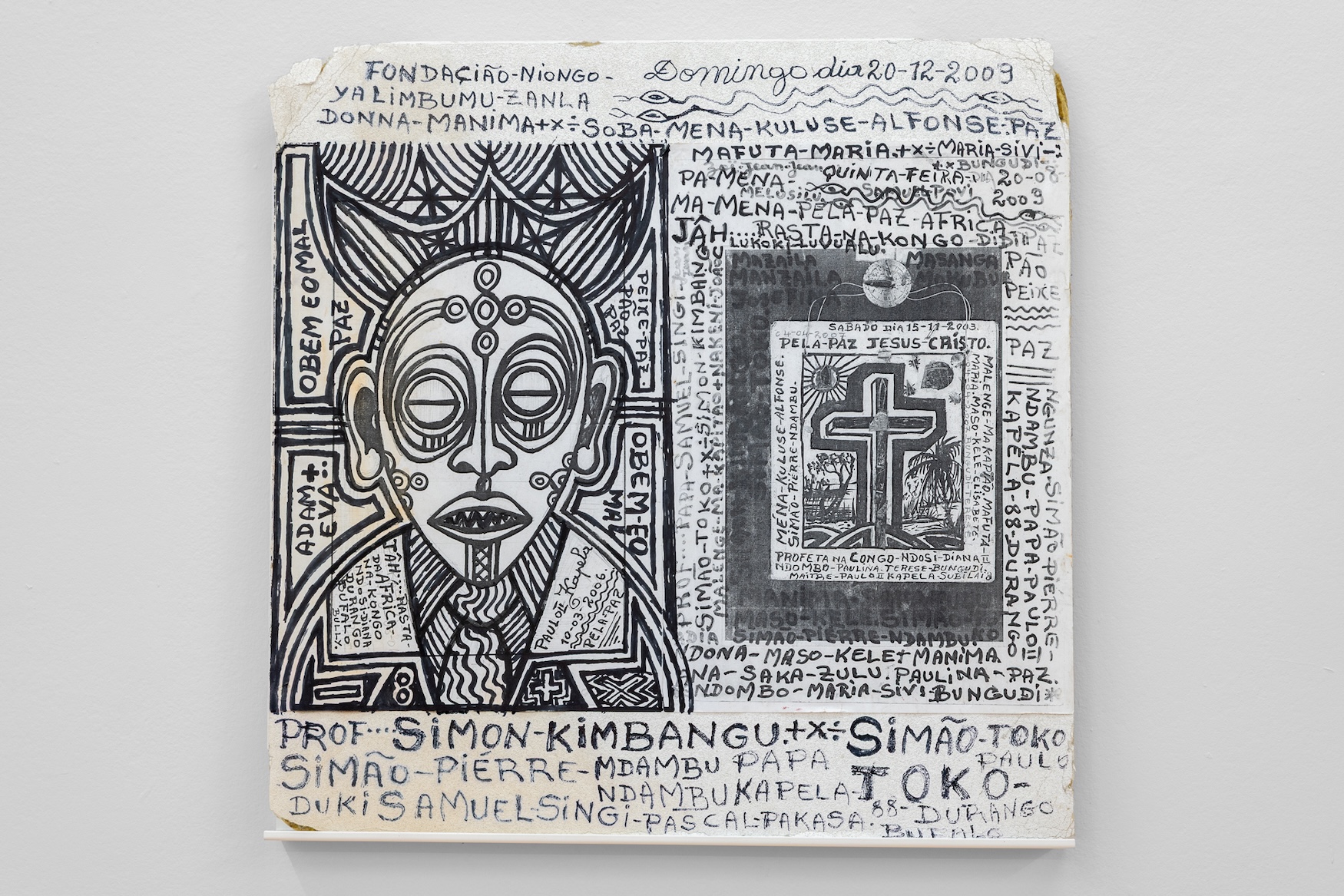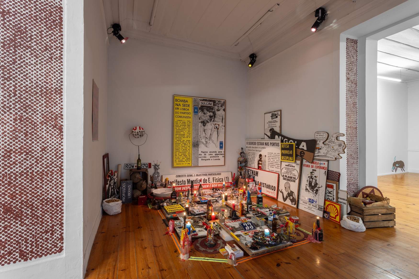 The final hauntological return staged within Memória Fantasma is that of Paulo Kapela, whose presence is announced before his works appear, through an altar installation occupying one of the exhibition’s rooms. Kapela (1947, Uíge – 2020, Luanda) was an Angolan artist who became both a reference point and an inexhaustible source of inspiration for Yonamine, as well as for an entire generation of Angolan artists, thanks to the force of his work and to a charismatic, almost prophetic figure—one that, in this sense, recalls Lee “Scratch” Perry. The altar created by Yonamine is more than a citation of Kapela’s practice; it constitutes an appropriation of his aesthetic that operates simultaneously as homage and as a form of temporal and architectural doubling. Their renewed proximity here at ZDB suggests that these works are not meant to stand alone, but rather to be activated through the continued presence of their mentor.