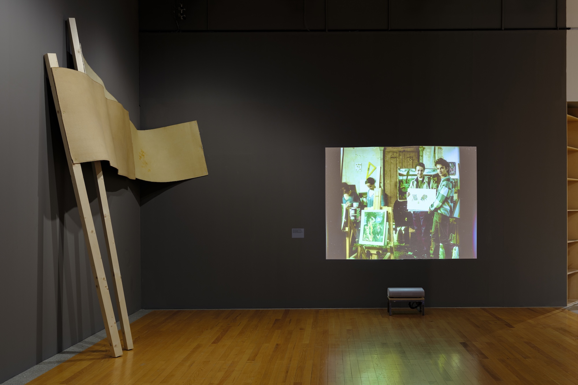 Reading the captions attentively, one encounters throughout the exhibition a series of clues that allow for the reconstruction not only of the space and its dynamics but also of the relationships that developed among the artists who shared it. What emerges is as moving as it is surprising: alongside amusingly unlikely situations and moments of affinity, there are numerous episodes, each emblematic of the companionship, participation, dialogue, and collaboration that consistently defined the Avenida. These clues show how the place, its participants, and its artistic production mutually constituted one another as a creative and affective ecosystem, marked by permeability and organic exchange—at one point, it is noted that, from the very outset, all the interior doors separating the numerous work rooms were removed so as not to impede the creative flow. On a screen, dozens of photographs by Susana Pomba document openings and moments when the community opened itself to the public, with artists, friends, and works in constant interaction. I find myself smiling as I recognise faces I hold dear, artists I admire and people I count as friends; and it is heartening to see how many of the relationships—affective and creative, as though such a distinction were possible—forged during the lifespan of this place endure to this day.