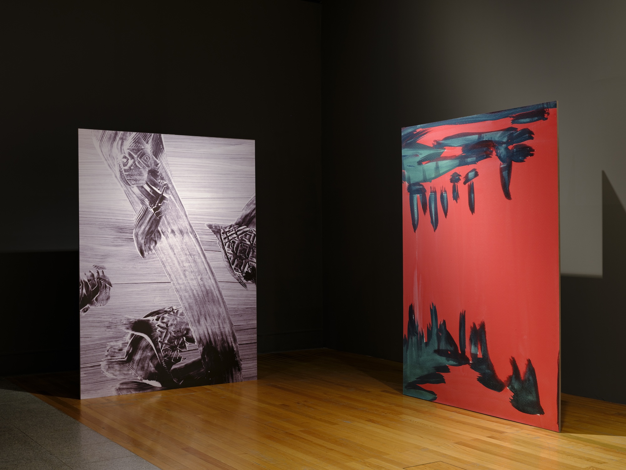 Produced within the studios of Avenida 211, many of the works on view (photographs, measurements, moulds, prints) respond or refer directly to the building itself—and, I would venture, to an underlying awareness that the project already had a planned end. As though seeking to fix their memory of the space against the erosion of time, images of the interiors and exteriors of no. 211 accumulate: from the doorframe to the shadows cast by the windows, the dimensions of the rooms, the avocado tree growing in the interior courtyard. Armanda Duarte's spare, delicate Espaço enrolado por mãos engorduradas is a perfect example: made in 2012 for the group exhibition Logradouro (itself likely a further reference to the building's interior-exterior space), the three small balls of linseed-oil-soaked thread record the length, width, and height of 211's exhibition space. Dating back to 2008, a large work by António Bolota—represented here by its maquette alone—was originally constructed from metal beams and plaster, and suspended from the ceiling of his studio at non-orthogonal angles relative to the access points between the three rooms he occupied, standing as a material translation of the movements and circuits traced by the artist's body within his atelier. From the same year, Liene Bosquê's Interior is a latex cast of the interior surfaces of the space's windows, subsequently displayed outside, thereby bringing the inside out and connecting 211 to the Avenida da Liberdade and the life unfolding along it. The Avenida continued to reverberate beyond its physical boundaries, as in numerous works by João Maria Gusmão + Pedro Paiva: having built a camera obscura across two adjacent rooms at 211, the measurement of 3.10 metres—the focal distance permitted by the building's architecture—became the standard unit in the works they created there, and in many they would go on to make after moving studios.