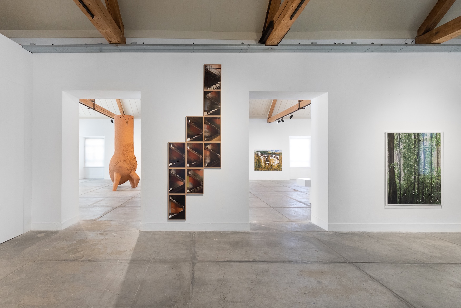 A minha prática curatorial também se foca em criar pontes entre narrativas transnacionais, e foi de forma natural que comecei a pensar para lá da coleção. Queria quebrar com esta ideia monolítica do continente Africano e da sua diáspora global. Não é estático, é intraduzível, complexo e sempre em mudança, política e conceptualmente. Queria convidar o artista Gabriel Chaile, por exemplo: Chaile é do norte da Argentina, e mudou-se para Lisboa há quatro anos atrás, durante a pandemia. A sua presença simbólica na exposição, com a escultura ¿Por qué has corrido tan lejos? (2024), estabelece conexões inesperadas com muitas artistas na coleção, como Sandra Poulson ou Teresa Kutala Firmino.