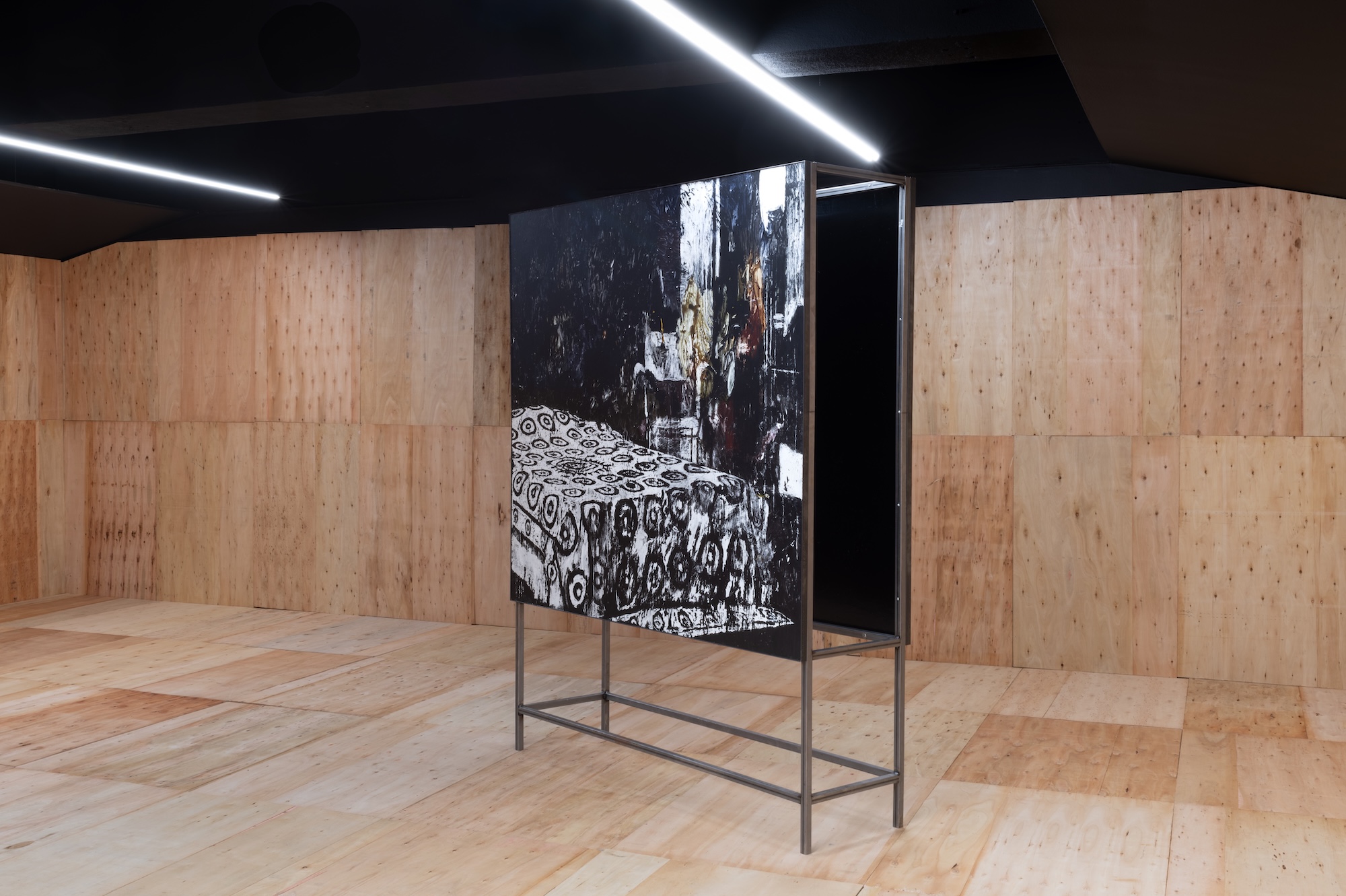 RB: Trata-se, antes de mais, de uma questão de perspetiva — mais próxima daquela que uma pessoa teria se estivesse fisicamente no espaço. Sinto que se tivesse de retratar este espaço com mais distância, seria transmitida simplesmente a ideia de um quarto pela sua própria definição. Neste caso, através desta proximidade e também pela própria elevação da tela — pela maneira como ela está posicionada — cria-se uma relação mais humana, mais real. Apesar de pequena, esta cama pode tornar-se verdadeira na perceção de quem olha. Se eu me posicionar no espaço, num certo ângulo, consigo ter uma relação mais real, mais íntima, com o objeto.