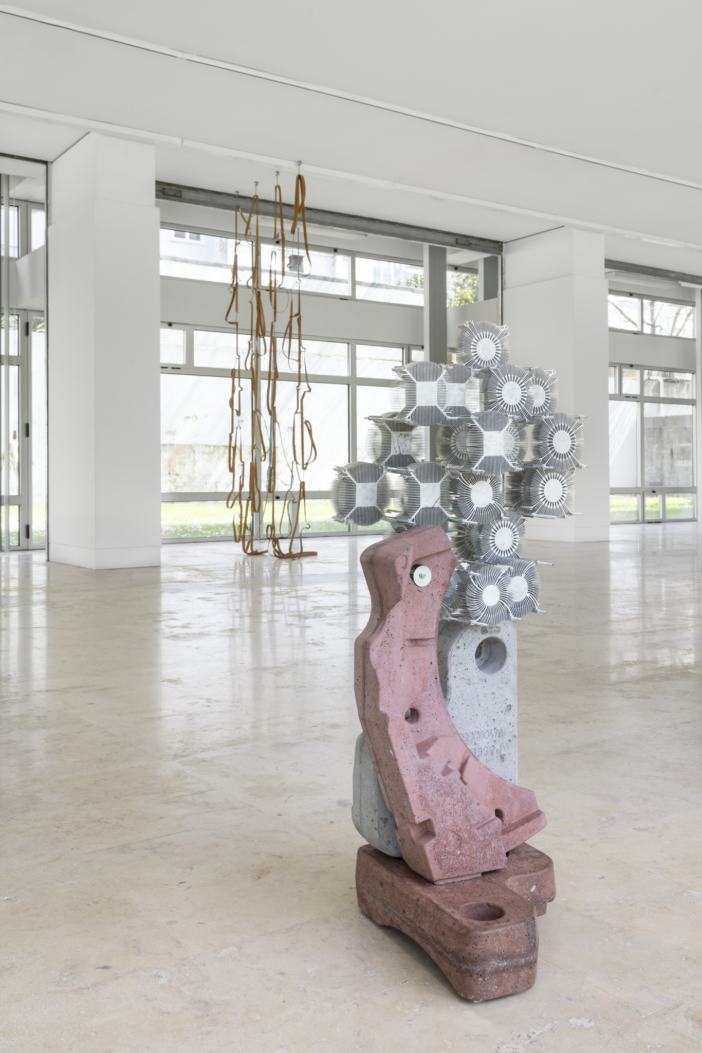 Na exposição Brama, de Mané Pacheco (1978, Portalegre), com curadoria de Ana Cristina Cachola, essa relação é explorada de forma particularmente consequente. Ainda que não se trate de uma exposição site-specific, a articulação entre o espaço expositivo e o jardim parece inevitável, como se ambos fossem o habitat natural dos seres que ali se apresentam. Interior e exterior convertem-se num lugar de encontro, quase uma assembleia silenciosa, habitado por seres híbridos que desafiam categorias estáveis. As vinte esculturas, entre as quais catorze inéditas, combinam materiais de natureza diversa, onde a rigidez estrutural coexiste com uma sugestão latente de movimento. As suas formas evocam simultaneamente organismos naturais e fragmentos de corporalidade humana, instaurando uma ambiguidade persistente entre aquilo que conseguimos reconhecer e aquilo que nos causa estranheza.