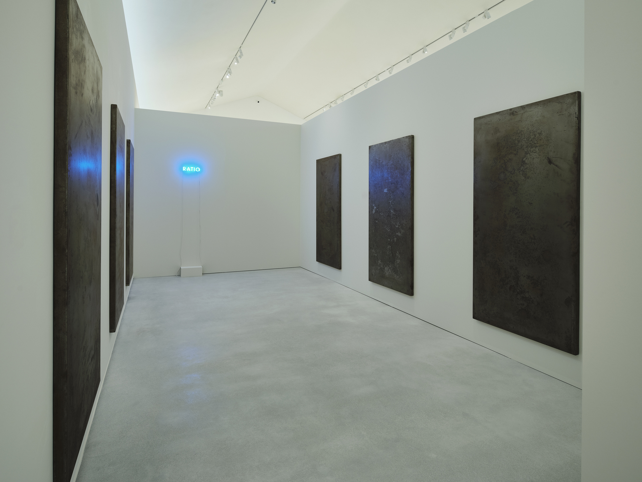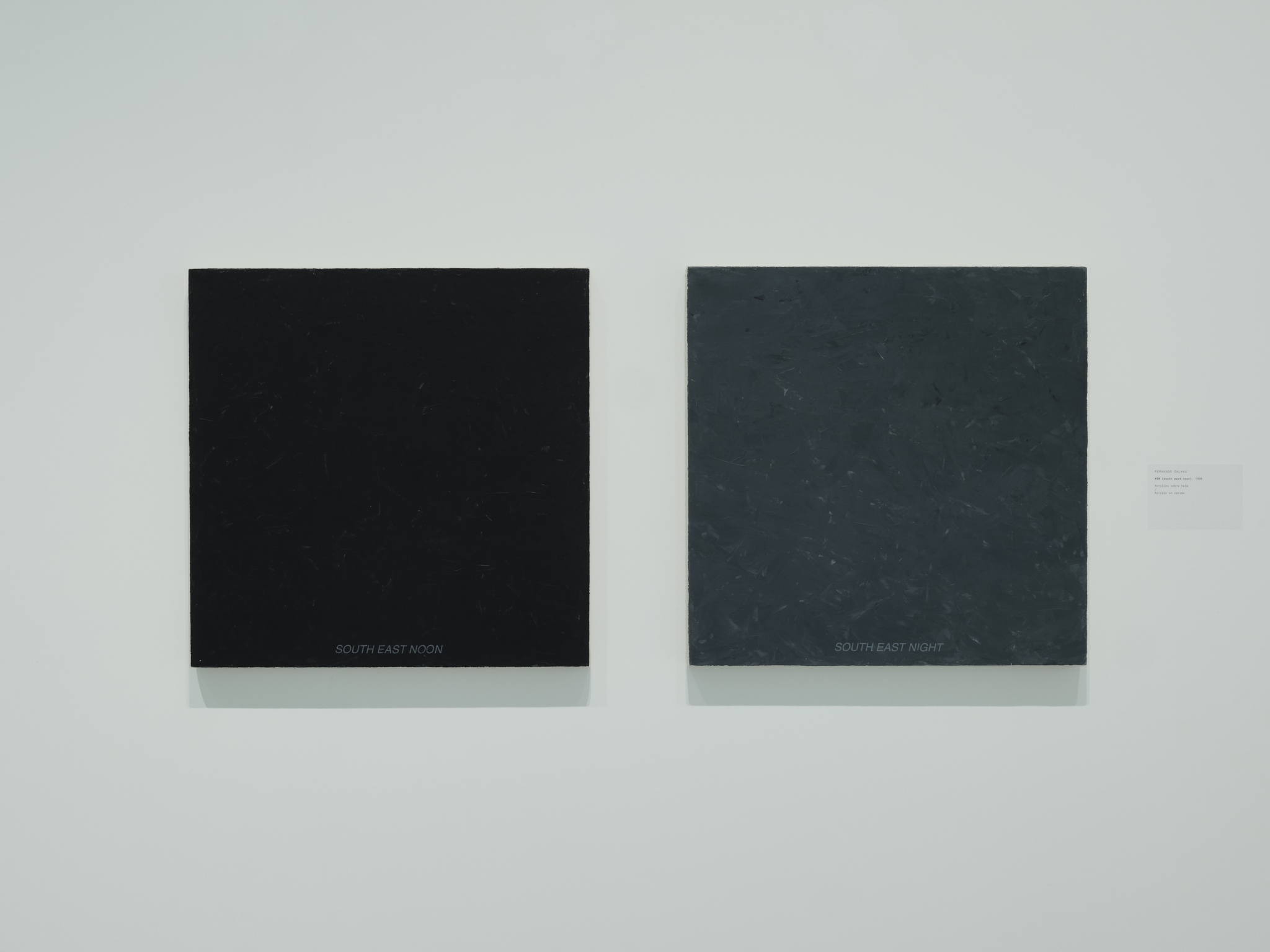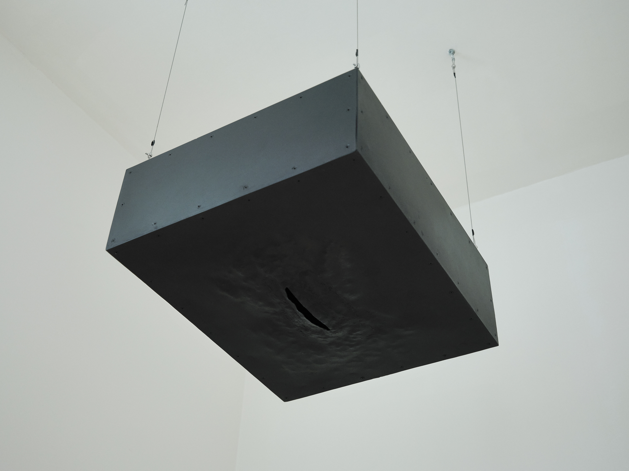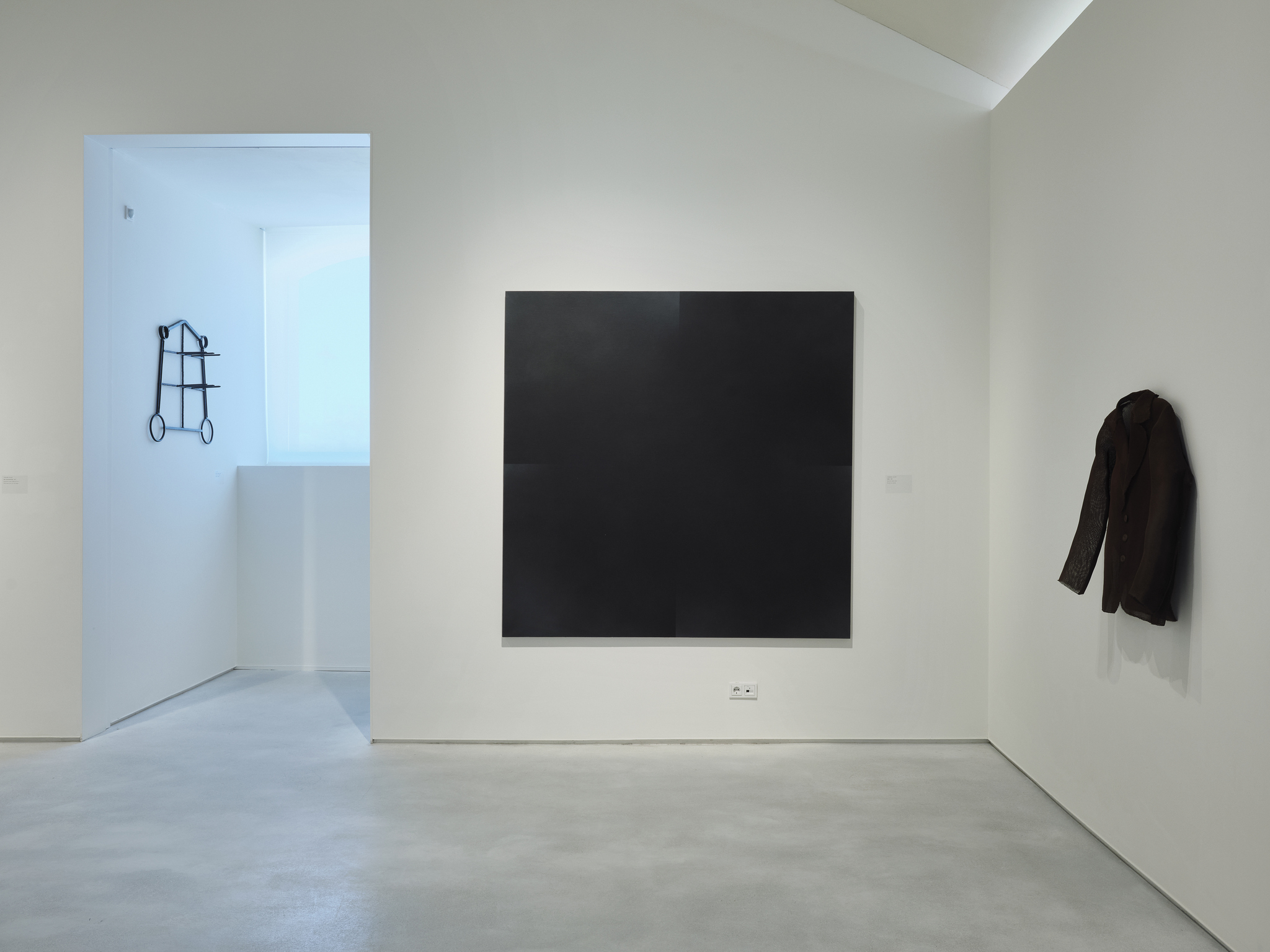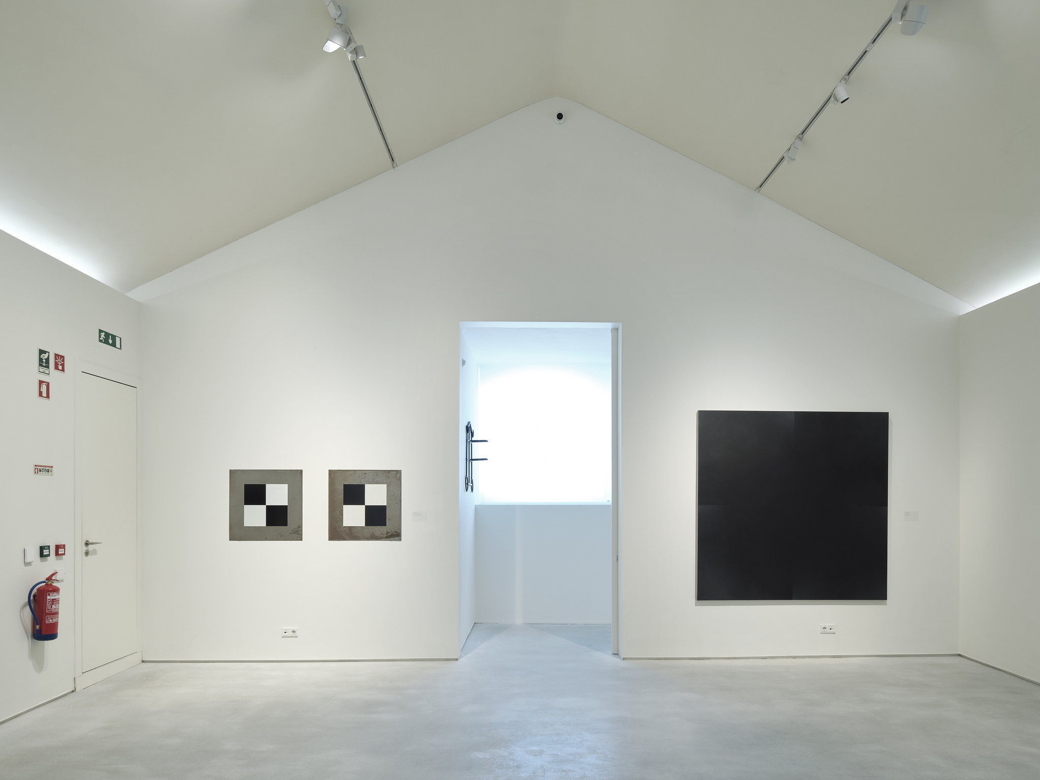 Nesta exposição, e na obra de Fernando Calhau em geral, o quadrado afirma-se como um elemento recorrente e catalisador numa geometrização depurada. Na simbologia da arte, o quadrado destaca-se como uma forma que representa estabilidade, ordem e racionalidade, directamente relacionada com a sua estrutura regular e equilibrada. Na verdade, numa associação ao mundo material e ao espaço construído, o quadrado representa o concreto, delimitado e humano, em contraste com formas mais fluidas ou infinitas, como o círculo, por exemplo. A sua relação com o número quatro — presente nos elementos, nas estações e nos pontos cardeais — reforça a noção de totalidade organizada. Ao mesmo tempo, na arte moderna, esta estabilidade pode ser racionalizada, como na conhceida séria de Kazimir Malevich, onde o quadrado se torna um símbolo de ruptura mas também de redução à essência da forma pictórica. Os quadrados vão pontuando o espaço expositivo nos seus diversos suportes, linguagens e escala, que vão aumentando, numa proposta de extrapolação para o transcendental, ou seja, depois de para sempre.