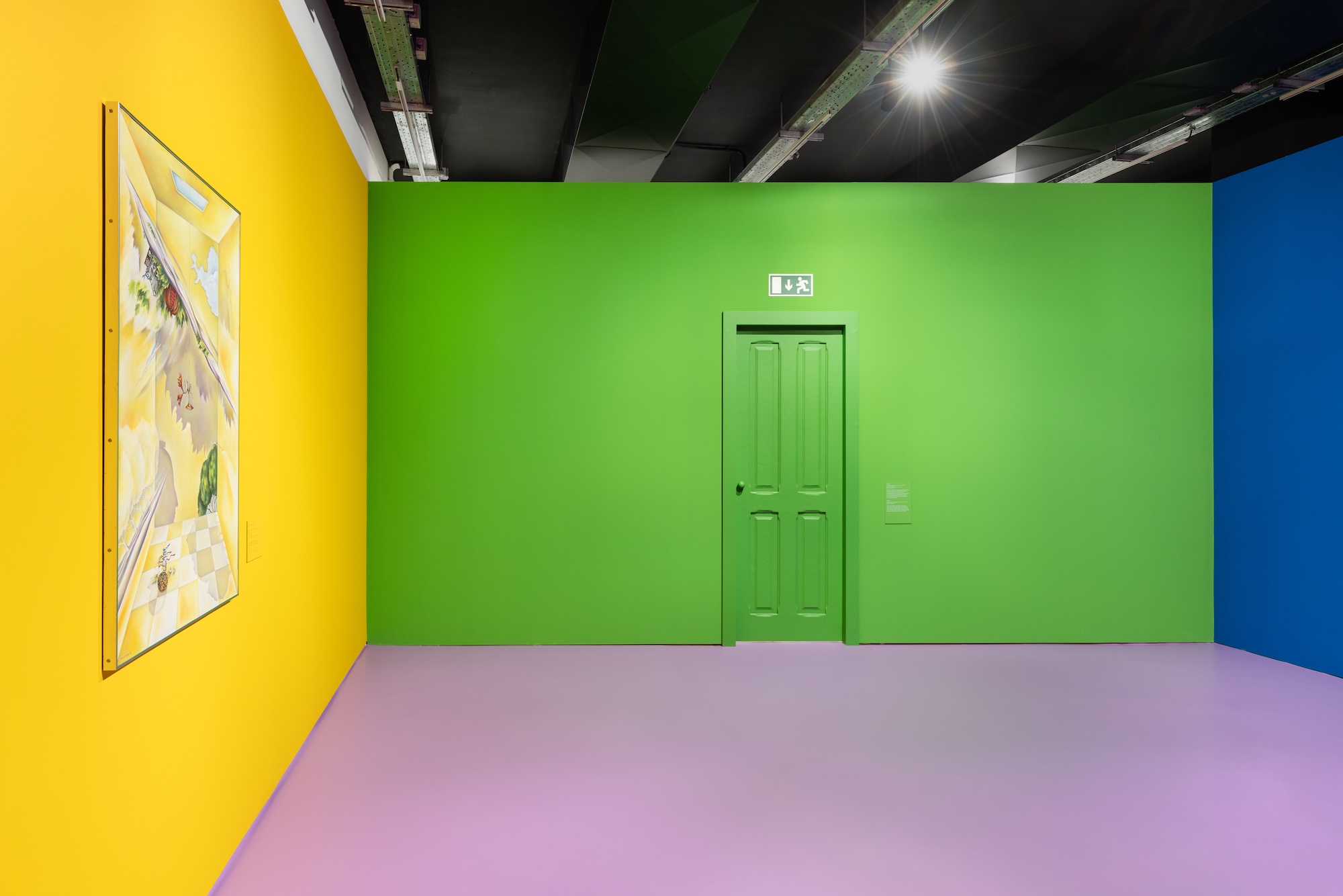 As cores são fortes, contrastantes e até divertidas — vermelho, roxo, azul —, num exercício de design no qual as portas abrem para espaços, e tudo se liga na possibilidade livre de vários caminhos, precisamente como sucede com o fim da unidade das Belas-Artes, que se caracteriza pela disseminação das formas de criação a partir de linguagens, materiais, gramáticas estéticas, objectos, ou da imensa diversidade de fruição, na verdade, que se iniciou de modo irreversível a partir de meados do século XX e que marcaria um território de experimentalismo não mais abandonado. Esta dissolução é aqui sublinhada, por exemplo, pela introdução, por parte de Zhu, de manequins de lojas, dispostos como as Graças clássicas e classicistas. Mais do que nas obras, o centro desta instalação é precisamente o seu dispositivo, que funciona como um mise-en-abyme narrativo e visual. A desmaterialização das paredes através das entradas-saídas sem ordem imposta, quebram metaforicamente a tradição académica e hierárquica das Belas-Artes, ao mesmo tempo que a diversa proveniência de objectos propõe a dissolução entre cultura erudita e cultura popular, a qual, na verdade, tem a sua origem o contexto do movimento pós-moderno e das suas práticas fragmentadas, irónicas, citadoras e historicistas. Esta desagregação, hoje plenamente incorporada, esteve na origem do alegado “refugo” — é Jean-François Lyotard (A condição pós-moderna, 1979) quem o afirma — da arte pós-modernista.