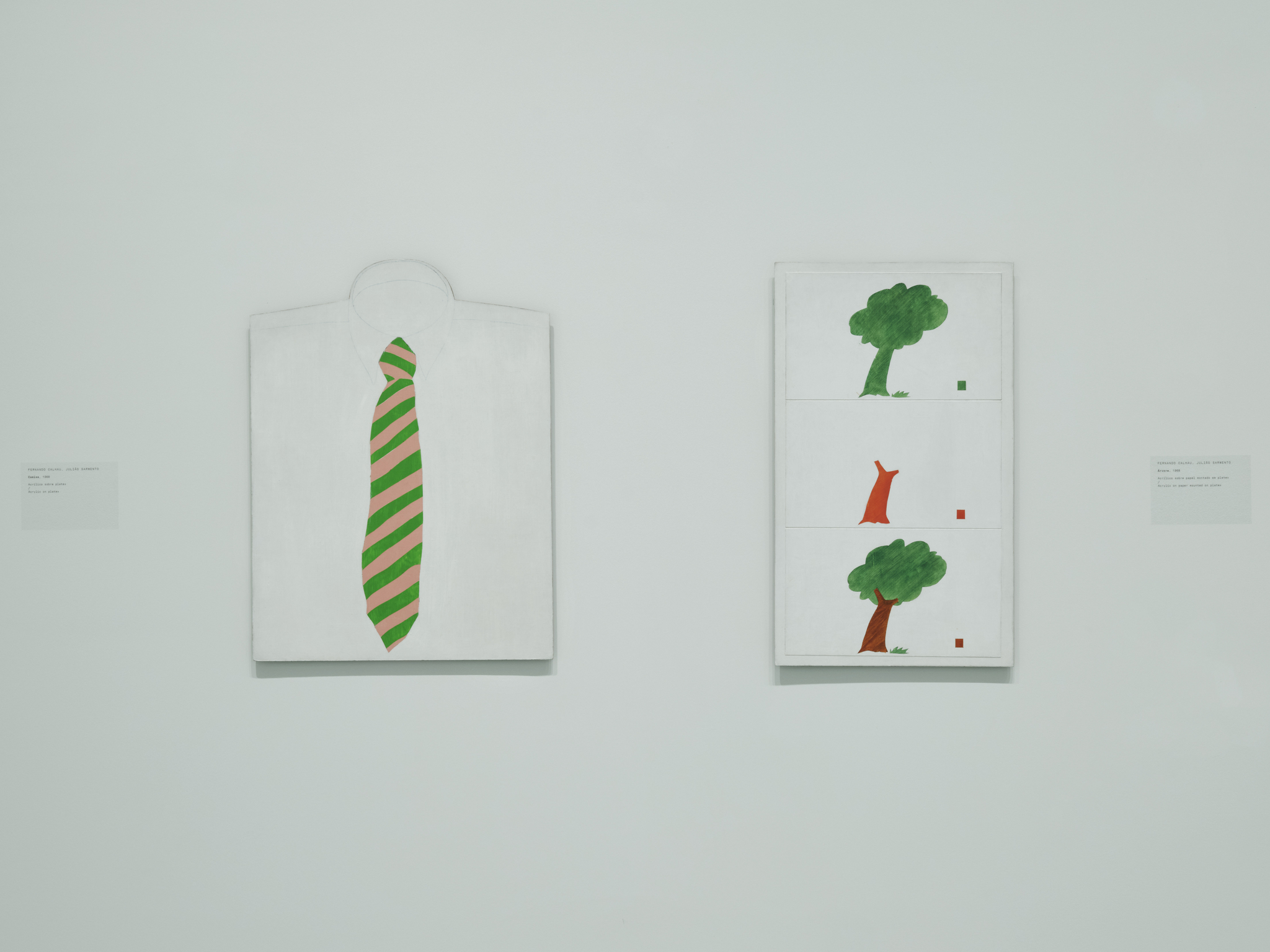 Foi há quase um ano que inaugurou o Pavilhão Julião Sarmento, com projecto de João Luís Carrilho da Graça, que alberga a relevante colecção de arte que Julião Sarmento (1948-2021) foi juntando ao longo da sua vida. O espaço, dedicado à arte contemporânea, possui uma escala humana e intimista, convidando o espectador a fazer parte deste universo, pontuado por obras de arte maioritariamente resultantes de afectos e de relações de amizade entre pares. Numa entrevista que nos concedeu em Janeiro de 2018 (Contemporânea), Julião Sarmento dizia que a primeira obra que adquiriu foi a Joaquim Rodrigo (1912-1997), na época em que era assistente do pintor. Fernando Calhau (1948-2002), um dos artistas presentes nesta exposição, curiosamente, também era assistente de Rodrigo e o seu percurso cruzar-se-ia sempre com o de Sarmento, por exemplo, e ainda por esses anos, pelo facto de terem trabalhado na Direcção-Geral da Acção Cultural, criada na sequência da Revolução de 1974 e da vontade imperiosa de construir um país novo. A proximidade entre Sarmento e Calhau passou pela arte, pela cultura e pela amizade. As suas gramáticas artísticas, embora absolutamente distintas e igualmente consistentes, tiveram como denominador comum um conceptualismo de fundo sofisticado e reconhecível.