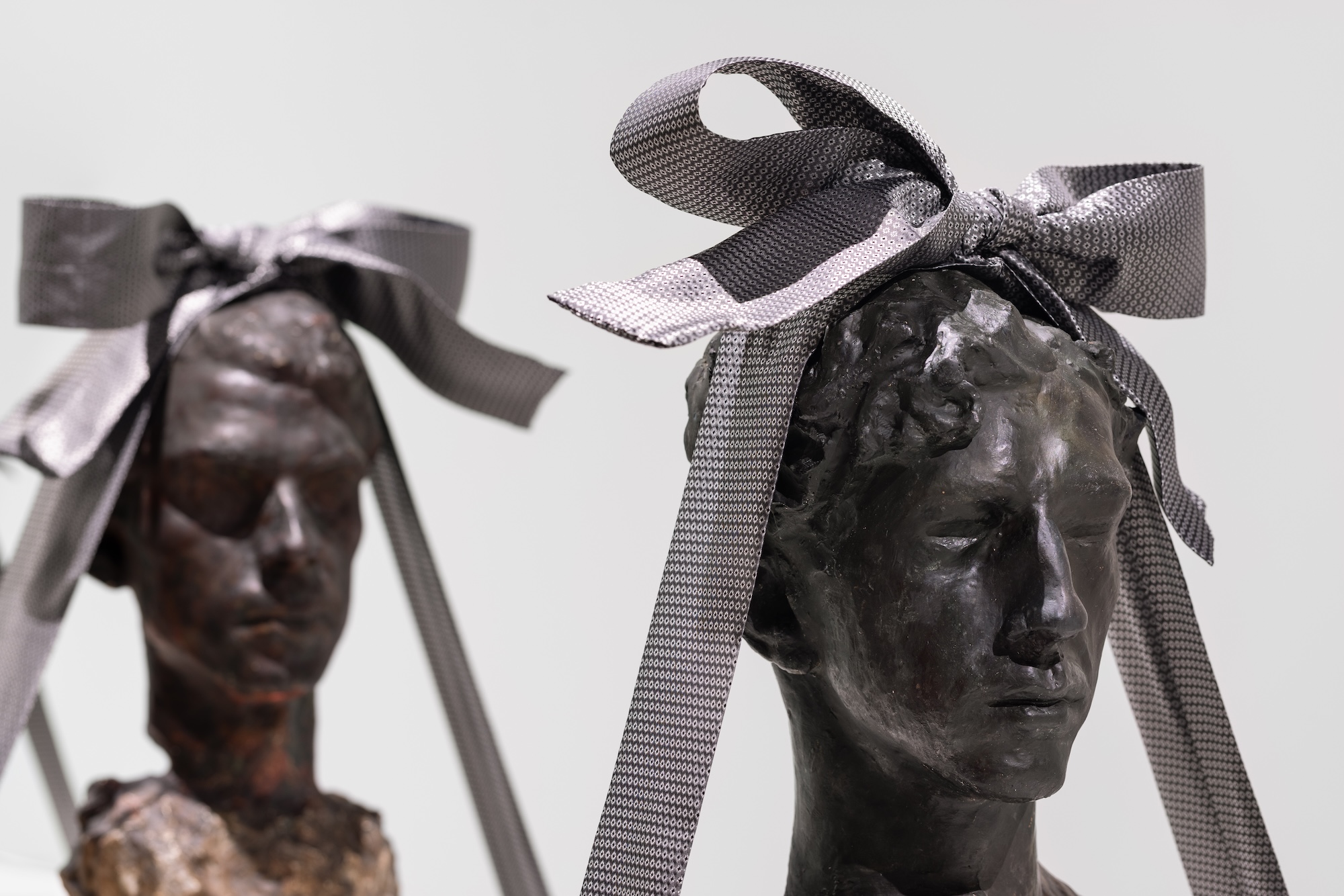 Belas-Artes é um título da exposição-instalação, com possibilidade ampla e derivante, que Bruno Zhu (n. 1991) propõe no CAMJAP/FCG. Trata-se de uma casa-exposição-instalação composta por quatro espaços que se conectam por intermédio de portas e que em três deles, num propósito que tem vindo a ser incrementado pela instituição, se mostra e se dialoga com obras da colecção. Na verdade, o mais relevante aqui não são necessariamente as obras, embora a sua escolha seja coerente, acertada, provocatória e com ironia intrínseca — as esculturas estado-novistas de cabeças agora com laços são óptimas —, mas o modo como esta visualidade é construída. É uma surpresa que produz universo e que, portanto, torna esta proposta singular, ou seja, passível de ser recordada precisamente pelo valor e eficácia da sua sigularidade. Este é um barómetro importante para definir criticamente uma “boa” exposição. Vamos entrar.