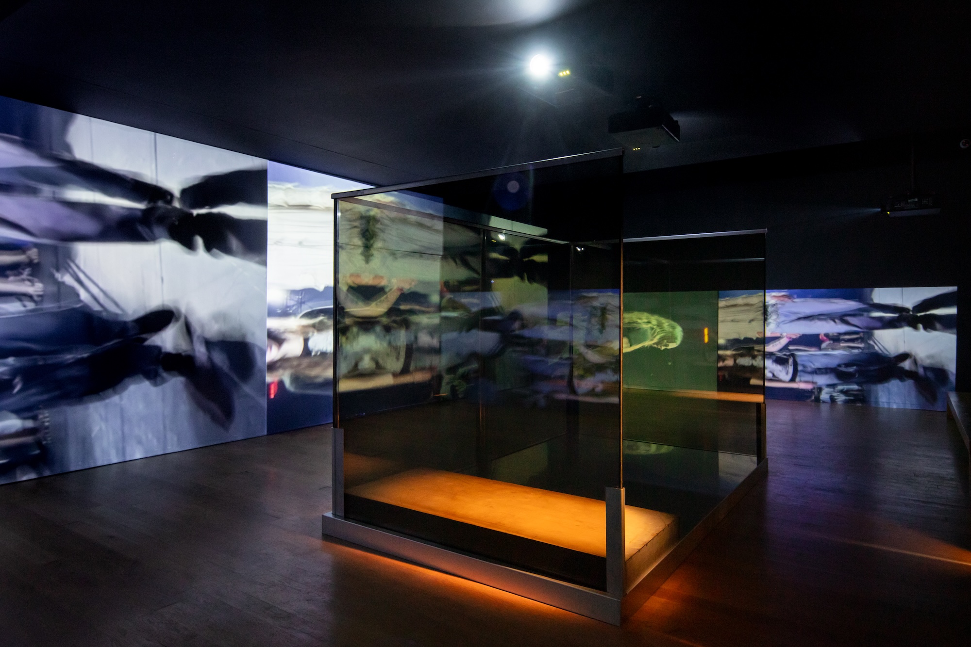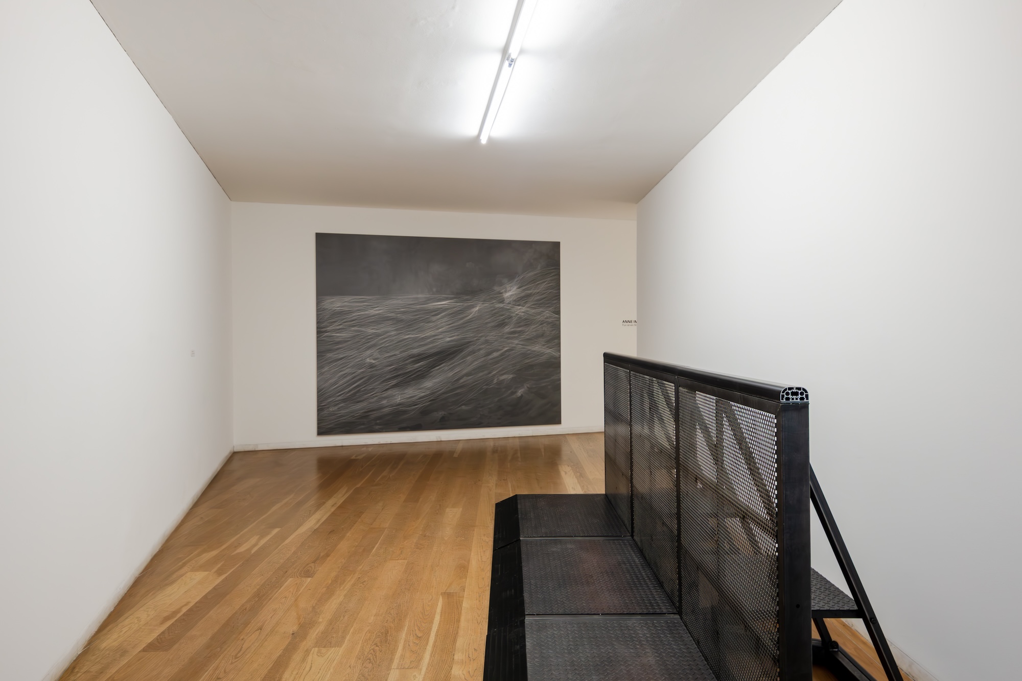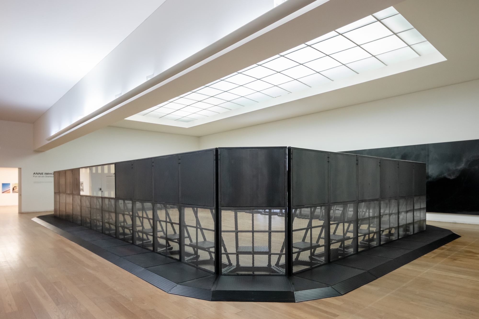 Neste jogo geopolítico da alta finança que atravessa as relações entre arte e moda, a exposição de Anne Imhof no Museu de Arte Contemporânea de Serralves não passa despercebida. Inaugurada a 12.12.2025, Fun ist ein Stahlbad, cuja tradução directa para português, como se pode ler na folha de sala, é O divertimento é um banho de aço,6 parte da ideia de Theodor Adorno e Max Horkheimer de que “Fun é um banho medicinal, que a indústria do prazer prescreve incessantemente”.7 Apropriando-se de algumas conhecidas leituras críticas que aqueles autores desenvolvem em torno das indústrias culturais e do lazer, do divertimento e da felicidade, do trabalho, da disciplina, do controle e da liberdade, a artista propõe-se, com maior evidência num conjunto de obras que outras, operar uma espécie de objectivação de algumas das conhecidas posições de Adorno e Horkheimer. Obras produzidas especificamente para esta exposição dialogam com obras que já integram algumas colecções. À devida consagração artística no Museu de Serralves, não falta um número razoável de obras de algumas galerias como a Sprüth Magers ou ainda da Colecção Pinault (estas com agradecimentos destacados no texto que acompanha a exposição), o que, além de reforçar a presença da artista no museu, contribui ainda para a sua valorização e controlo da oferta.