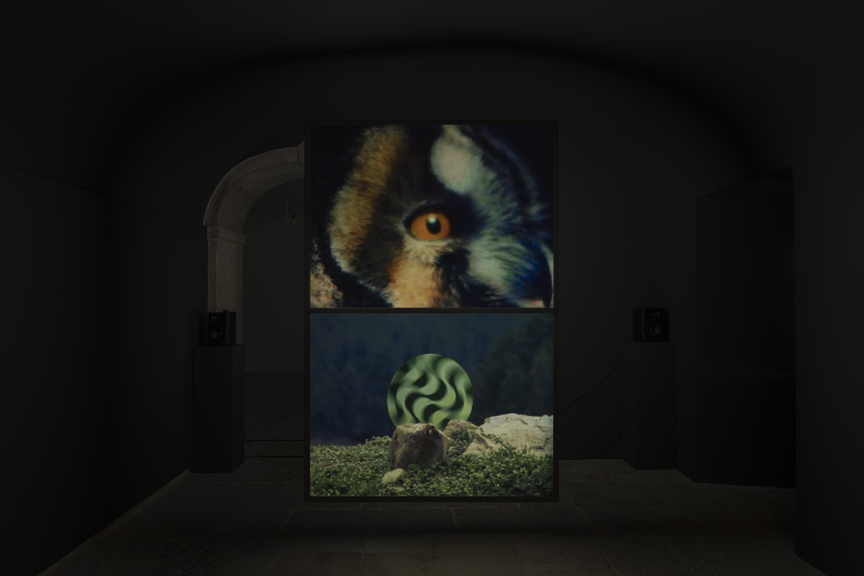 O olhar hipnótico só se torna possível no intervalo intangível entre a revelação e o desaparecimento. Os olhos esverdeados e ardentes da criatura mítica foram substituídos por discos ópticos pintados que, ao reflectirem-se na minha superfície, girando, girando, tornavam presente a presença fantasmática do seu corpo fugidio.