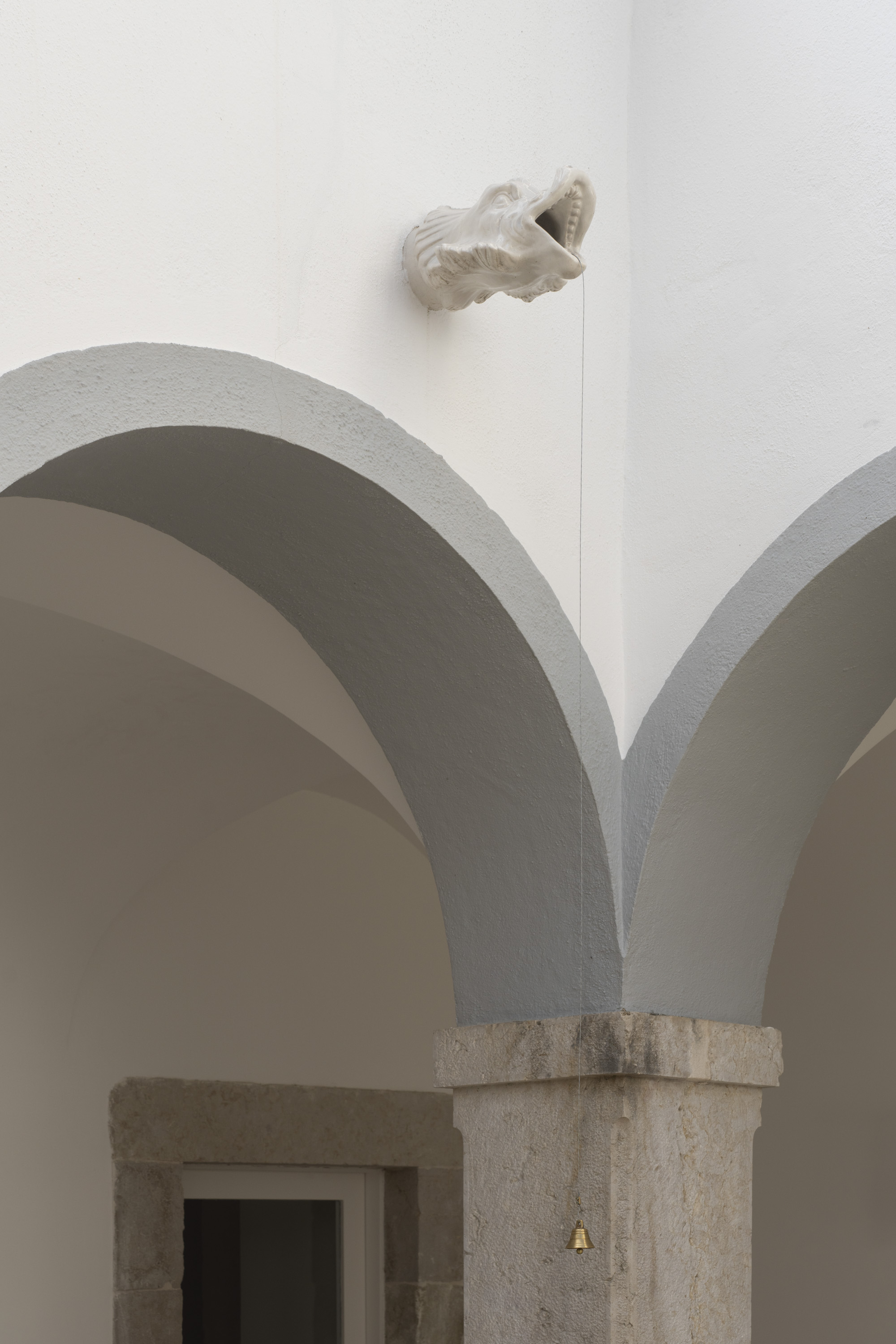 Von Calhau!, A sina do sino pelo gargalo da gárgula, 2025. Vestígios da performance/concerto no Convento dos Capuchos, Caparica. Fotos: Carbonara.st. Cortesia dos artistas e Contemporânea.